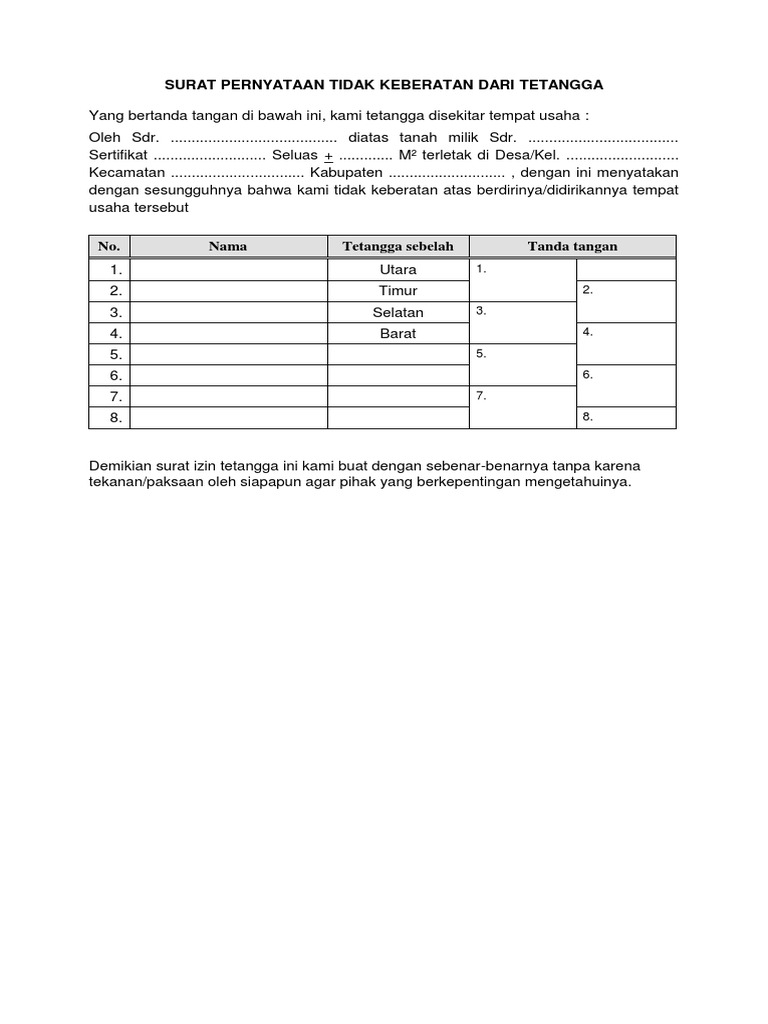 Surat Pernyataan Tidak Keberatan Dari Tetangga Pdf